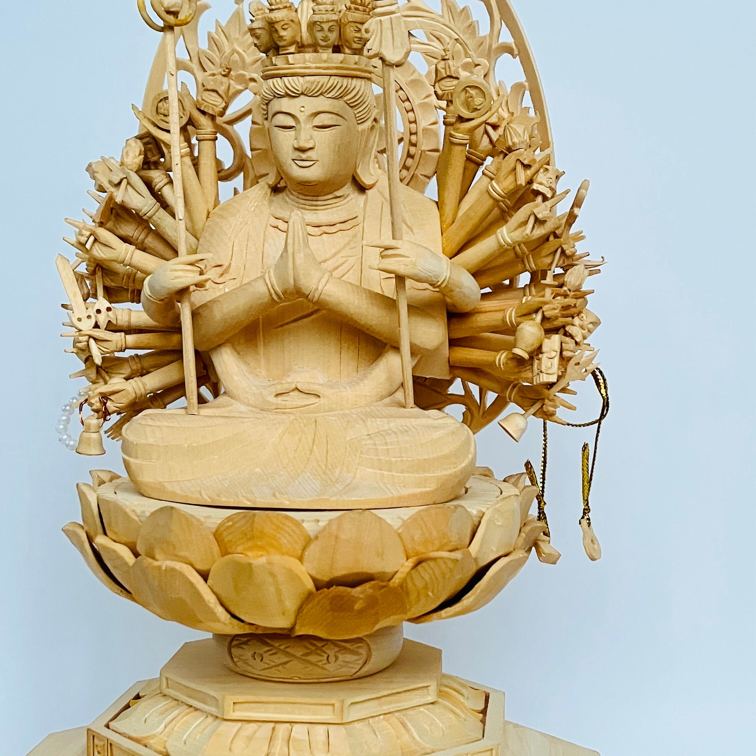 総檜(ひのき)手彫り十二支守り本尊の千手観音菩薩。