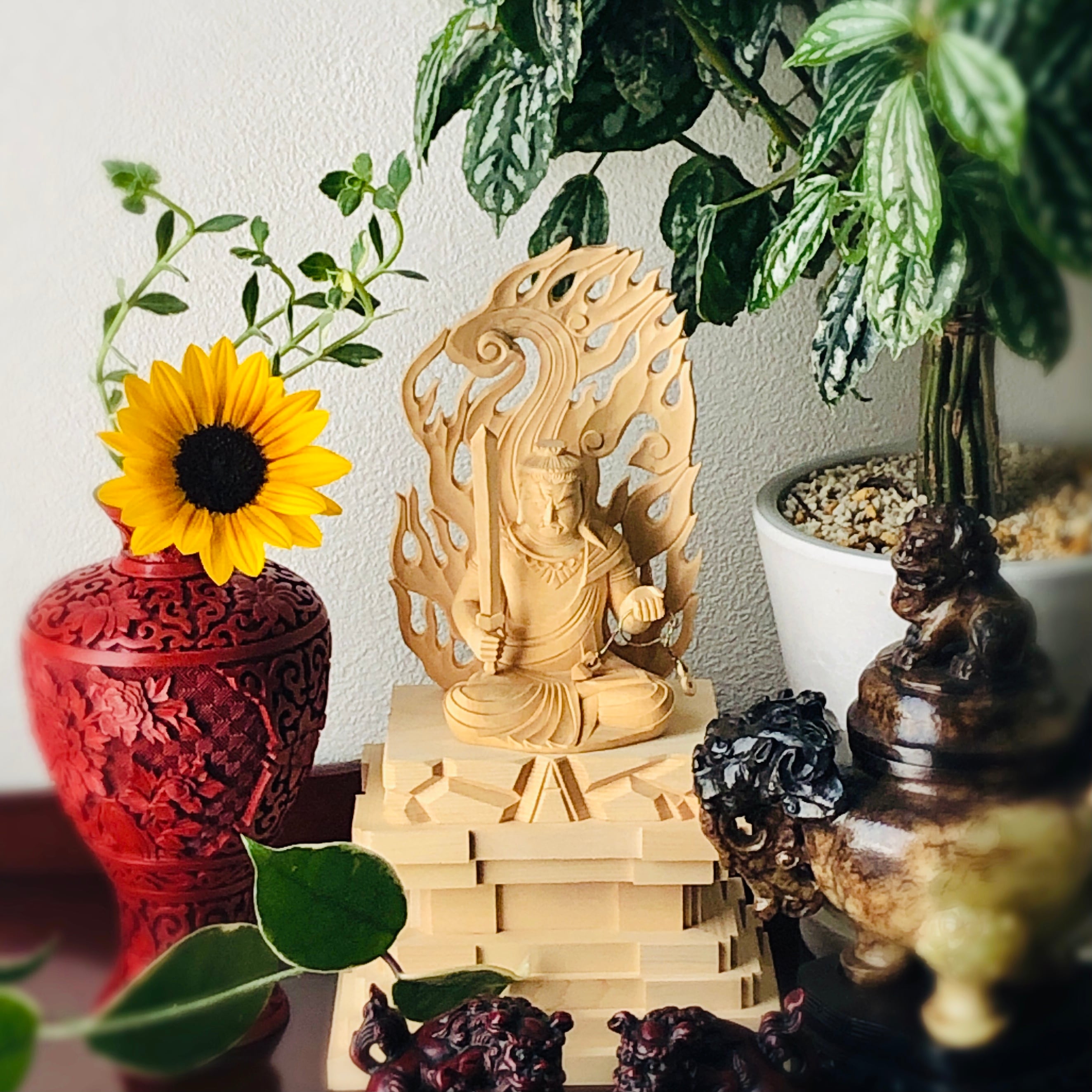 総檜(ひのき)手彫り十二支守り本尊の不動明王。