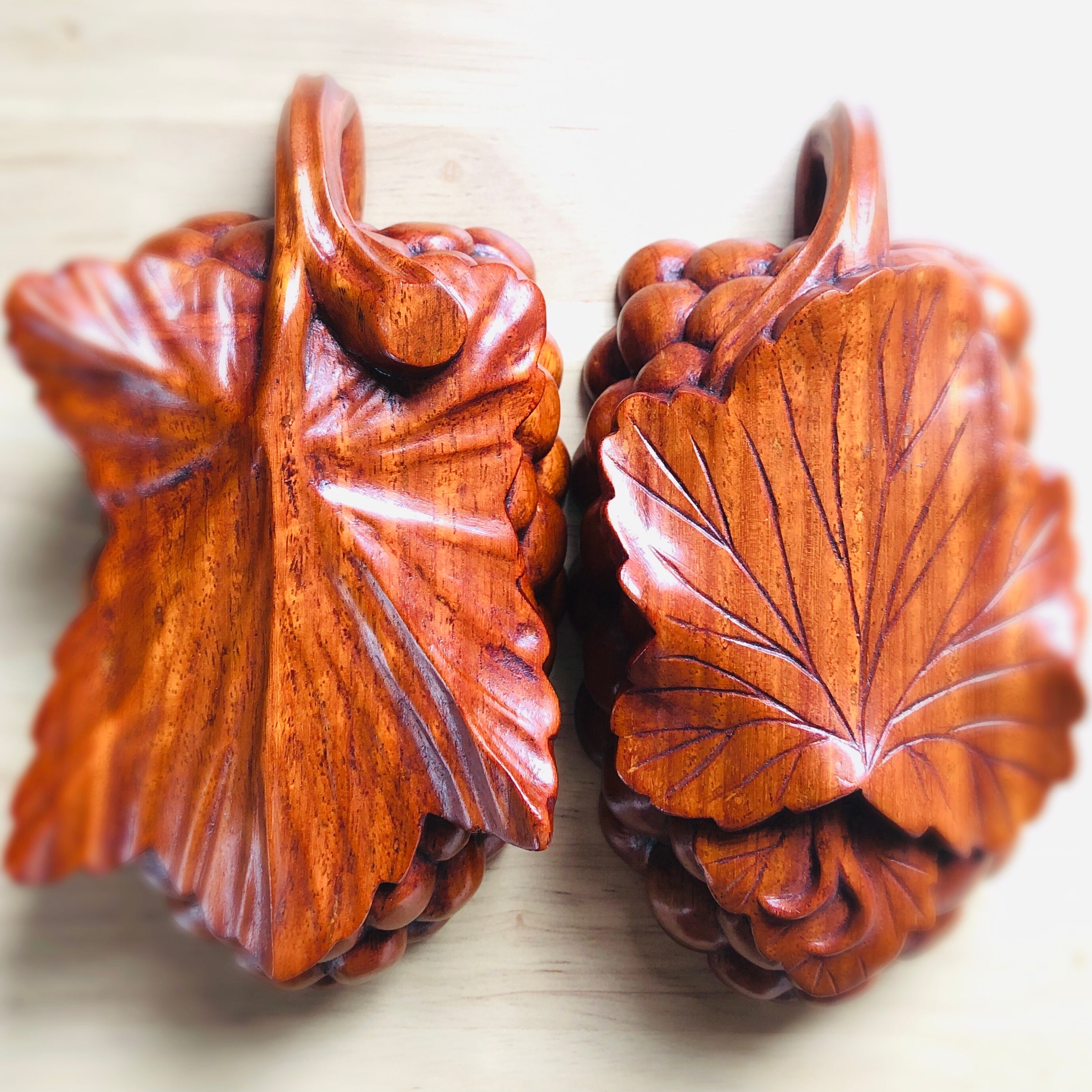 木彫りの小物入れ。トレイ(大)(小)のブドウとリスのシリーズです。